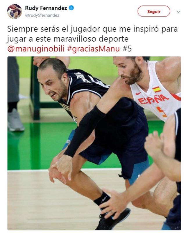 Siempre serás el jugador que me inspiró para jugar a este maravilloso deporte @manuginobili#graciasManu #5