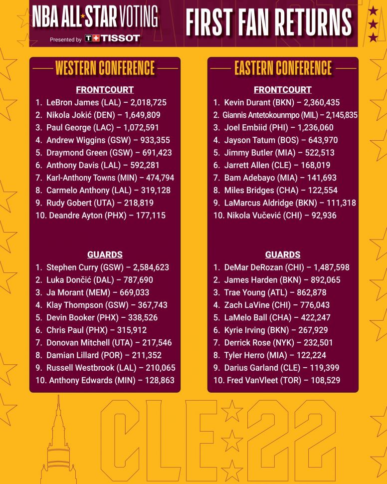 Stephen Curry y Kevin Durant lideran las votaciones para el All Star