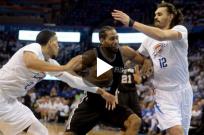 03:59 | San Antonio recuperó la ventaja de localía al derrotar a Oklahoma City Thunder por 100 a 96 en el tercer juego de las Semifinales de la Conferencia Oeste y puso la serie 2 – 1 en su favor. Kawhi Leonard fue la figura del partido al convertir 31 puntos. LaMArcus Aldridge lo acompaño con 26 y Ginóbili terminó con 5 puntos en 19 minutos. En los Thunder, Westbrook y Durant fueron los goleadores con 31 y 26.