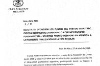 12:23 | A través de una carta oficial el Club Quilmes de Mar del Plata le pidió a la Asociación de Clubes que actúe sobre el resultado del juego ante Olímpico en La Banda. Los dirigentes reclaman el punto de la victoria en virtud de la suspensión del Comisionado técnico y el planillero.
