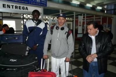 En medio de un gran desorden en el aeropuerto local producto del atraso del vuelo (llegaron a las 17 horas cuando en condiciones normales esta previsto para las 15.45) que los traía desde Capital Federal y la comitiva de adherentes que esperaba el arribo del ex presidente Néstor Kirchner, programada para una hora después, pisaron suelo santiagueños los extranjeros Dijbril Kanté y André Laws, flamentes refuerzos del Ciclista Olímpico. Luego del recibimiento de rigor del dirigente Peralta Rondano, los jugadores dialogaron escuetamente con Basket de Santiago.